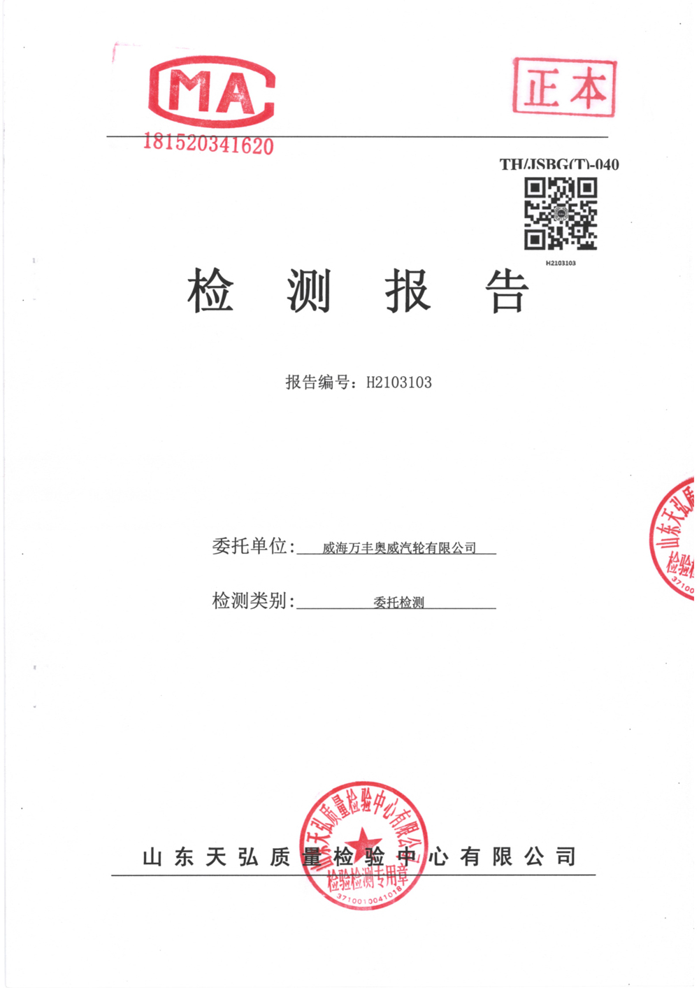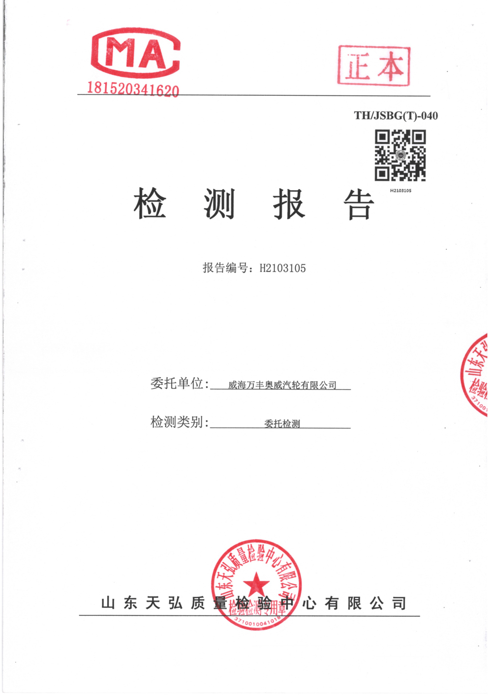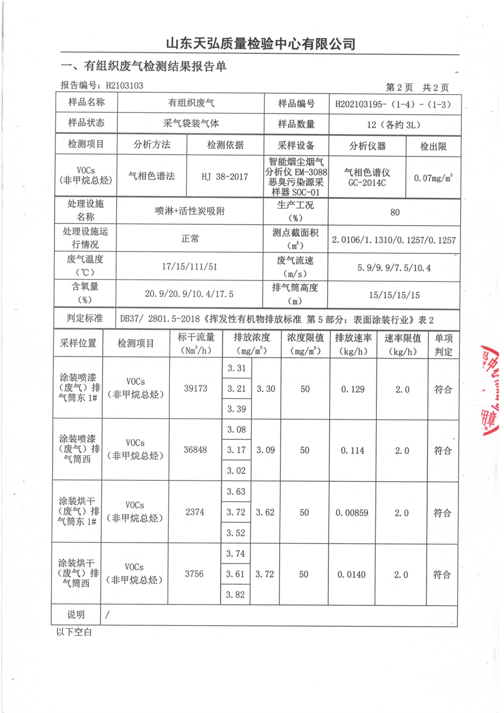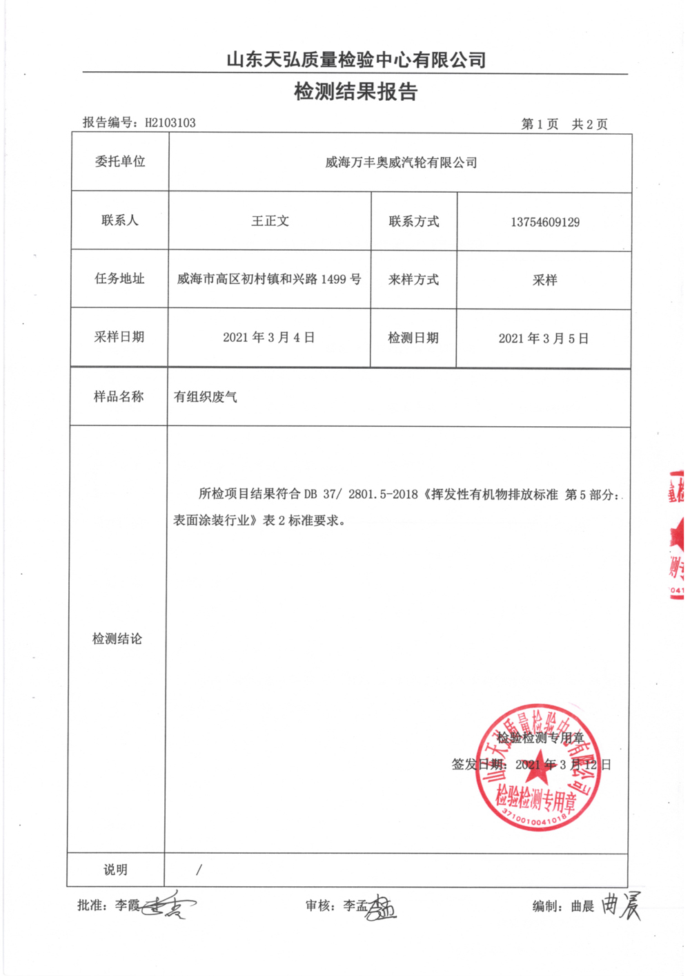 威海萬(wàn)豐奧威汽輪有限公司2021廢氣檢測報告公示